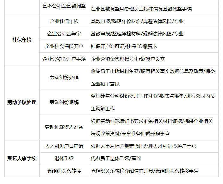 专项人事外包:专项人事外包业务相对于基础人事外包业务,指为满足企业客户各类HRM需求,企业可自由选择单项人事代理服务,或是专门针对某项服务与一鸣进行专项解决方案的合作。